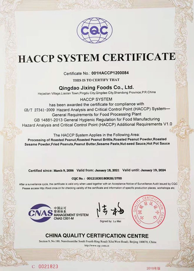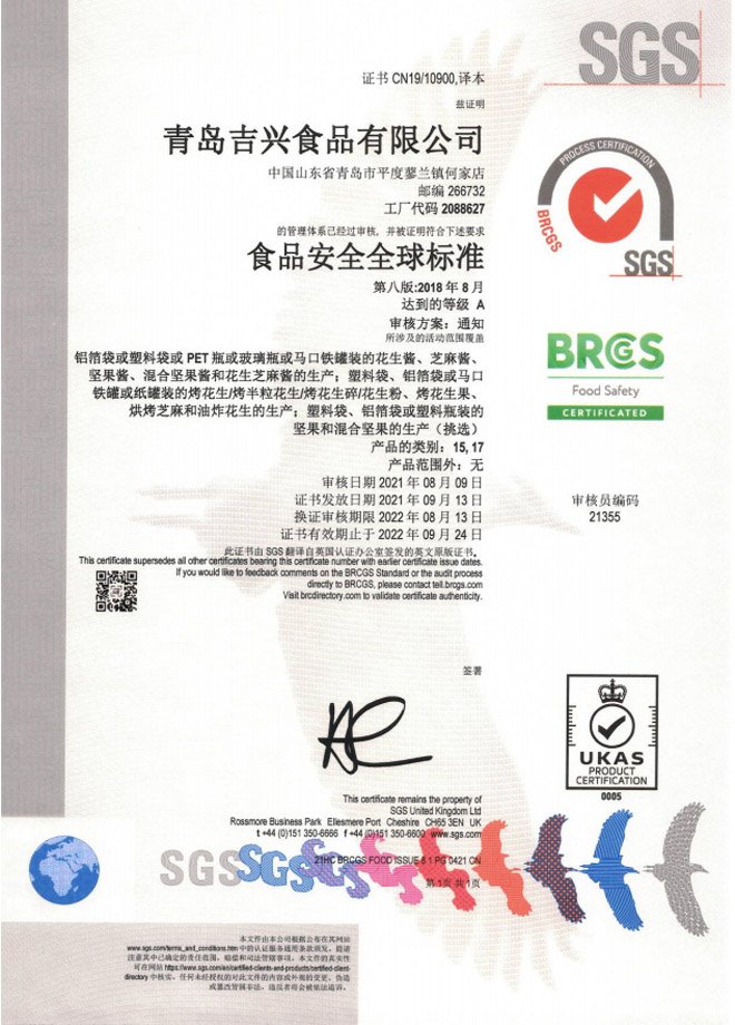 公司先后通過了HACCP、“全球BRCGS認(rèn)證”等認(rèn)證,公司擁有玻璃瓶花生醬清洗罐裝一體化自動(dòng)生產(chǎn)線、10-30萬級(jí)空氣凈化灌裝車間,全自動(dòng)化生產(chǎn)設(shè)備。配備美國(guó)黃曲霉素檢測(cè)儀、微生物/AV/POV獨(dú)立檢測(cè)室。